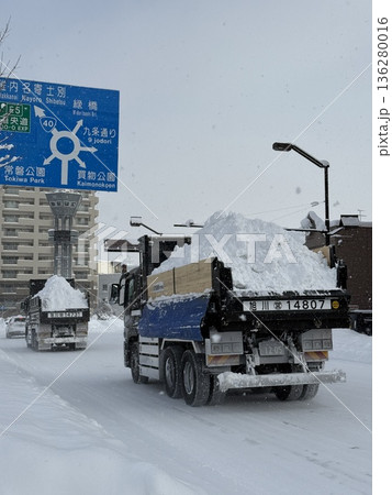 雪を捨てるトラック