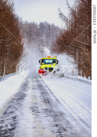 北海道冬景色 雪道 除雪 除雪作業