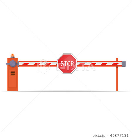 Creative illustration of open, closed parking car barrier gate set with stop sign isolated on