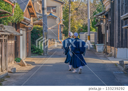 京都府八幡市に所在する臨済宗円福寺の托鉢僧を撮影したもの