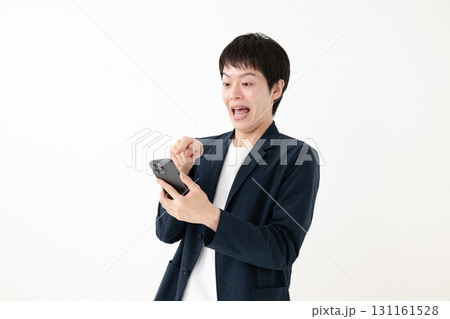 スマホを見て驚く男性