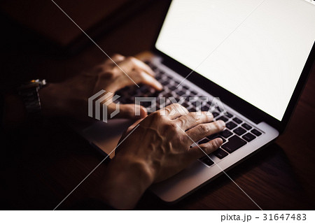夜・パソコンを使う男性
