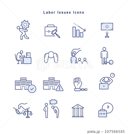 労働問題・ブラック企業・働き方改革に関するラインアイコンセット