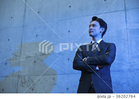 腕組みをして遠くを眺める男女(ビジネスイメージ)