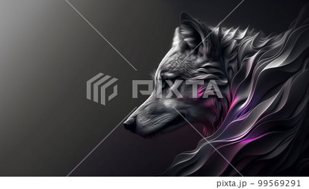 3D Abstract Wolf Wild Animal on Dark Background, Generative AI, Illustration
