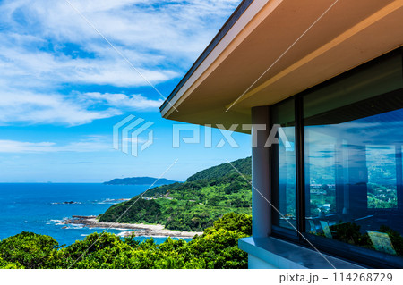 青い空と青い海の角力灘と遠藤周作文学館