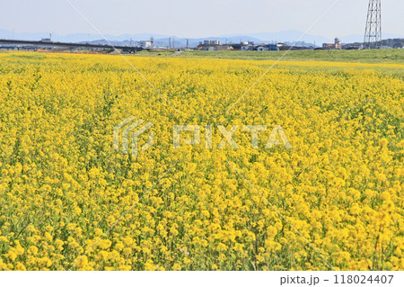 福岡県直方市遠賀川河川敷一面に咲くと菜の花