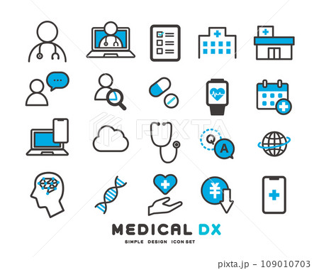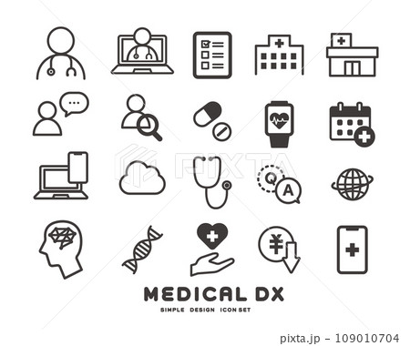 いろいろな医療・ヘルスケアのシンプルアイコンセット2、ベクター素材