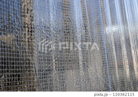 防炎糸入り透明ビニールカーテンのクローズアップ背景