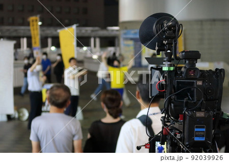 街頭演説の報道(記録)風景