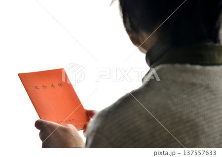 年金手帳を持つシニア女性