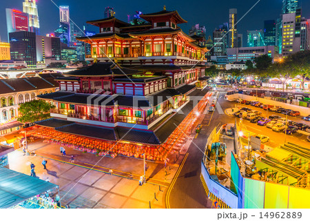 Buddha Toothe Relic Temple in Singapore pattern seamless black