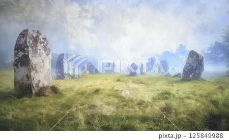 Ggantija Temples. Ggantija Temples hand drawn watercolor illustration