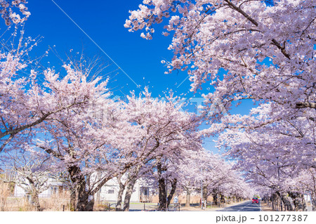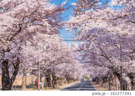 (福島県富岡町)夜の森公園・青空に映える満開の桜トンネル