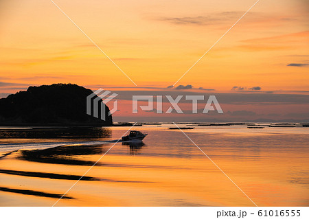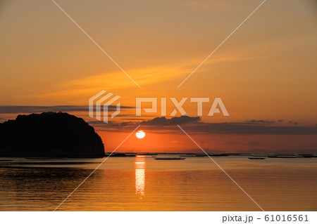 長島神社の鳥居と海の風景と朝日