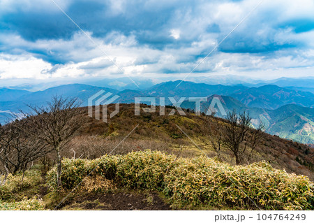 晴れた晩秋の那岐山山頂 岡山県勝田郡奈義町 鳥取県八頭郡智頭町