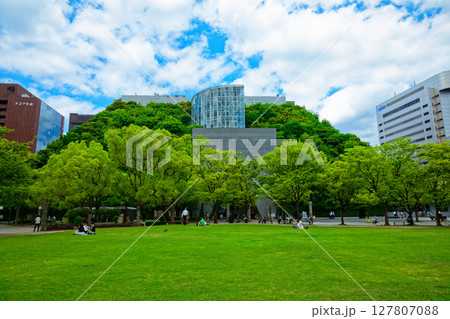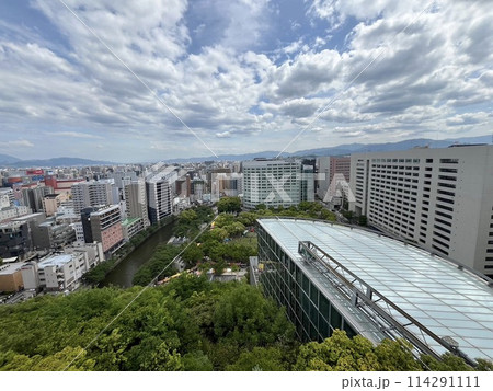 福岡市中央区「アクロス福岡」から天神中央公園・中洲方面を撮影