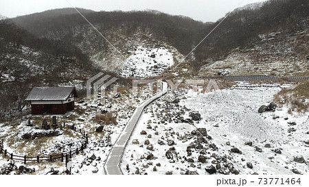 真冬の栃木県 那須 鹿の湯 の風景