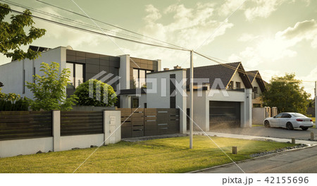 住宅の建築パース、3DCGによるモダンな住宅のイラスト