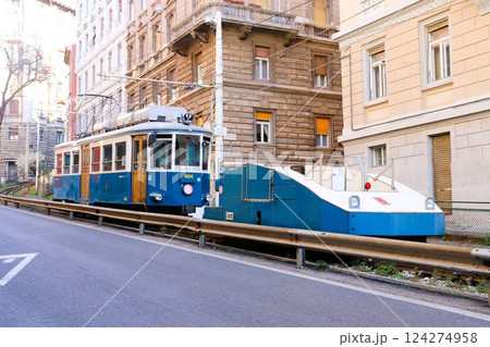トリエステの路面電車の後押しケーブルカー トラム イタリア ヨーロッパ