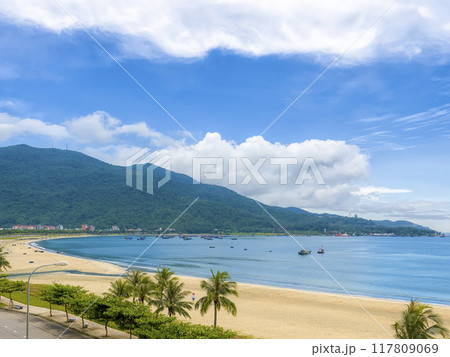 ベトナム・ダナン ミーケービーチとソンチャ山の景観