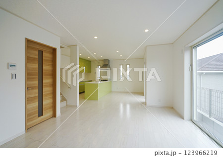 大きな窓のあるリビングダイニングルーム