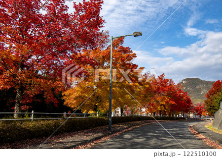 タイワンフウが赤く紅葉したグリーンヒル郷原
