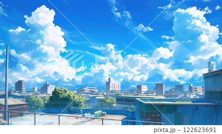 夏の水田の風景、アニメ風