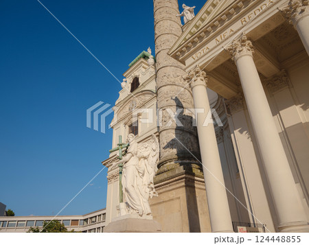 Vienna, Austria - 31 July 2023: Karlskirche church on Karlsplatz square at sunset