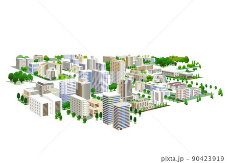 美しい高層ビル群の都市景観。美しいビル群と人々が自然と融合して明るく暮らせる街づくり。