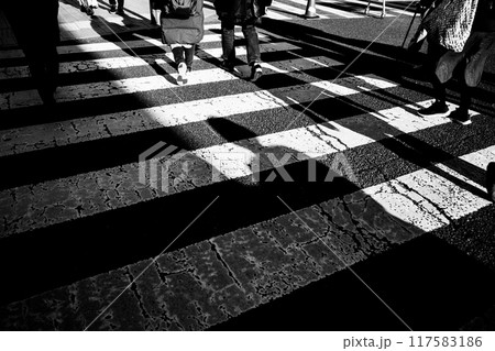 横断歩道を歩いて渡る人々の足元のスナップ