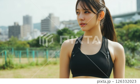 ジョギングをする日本人女性