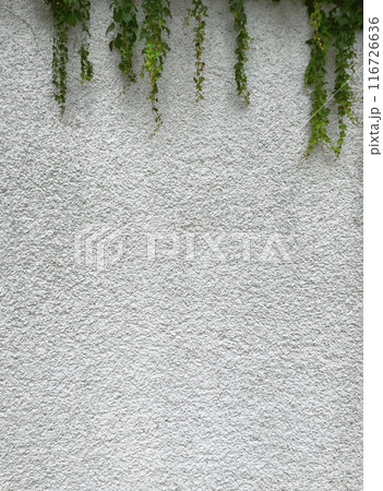 Richly textured exterior wall of a building with afternoon sunlight and green ivy.