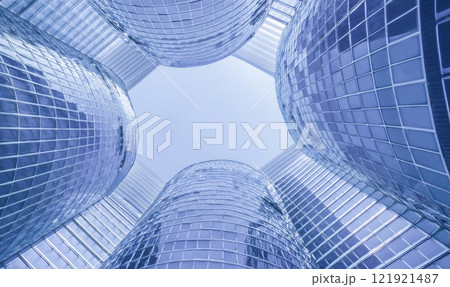高層ビル群の青い背景画像