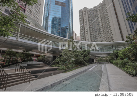 Oct 29 2025 Urban Plaza With Water Channel, Greenery And Glass Skyscraper