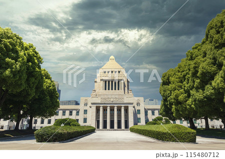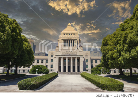 「東京都」ドラマチックのな空と国会議事堂 空合成