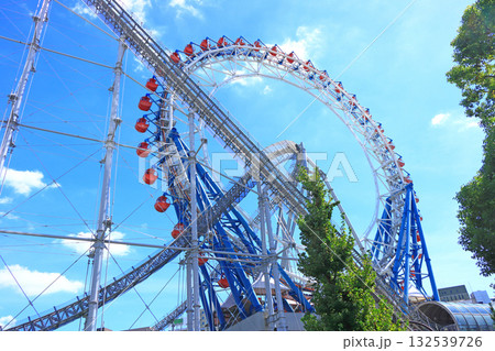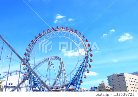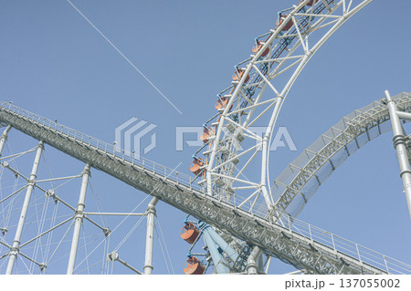 青空とジェットコーターと観覧車 ラクーア 後楽園 遊園地