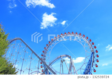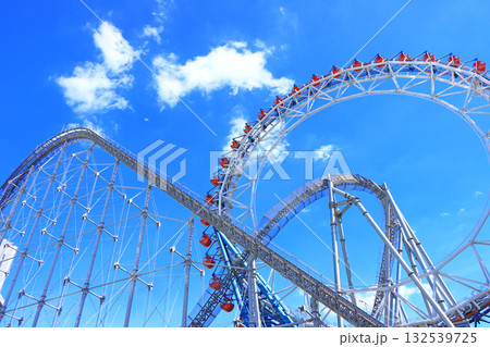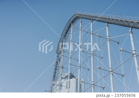 青空とジェットコーターのレール ラクーア 後楽園 遊園地