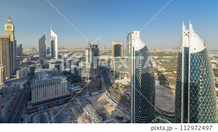 Skyline view of the buildings of Sheikh Zayed Road and DIFC timelapse in Dubai, UAE.