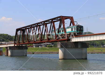 国包の鉄橋を渡る加古川線103系電車