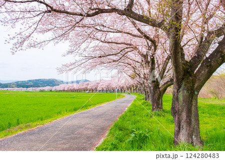 桜並木 堤の上の散歩道 都幾川桜堤 右に並木 a