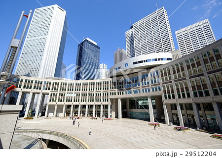 東京 西新宿の都市風景 東京都庁都民広場から見る東京都庁第一本庁舎