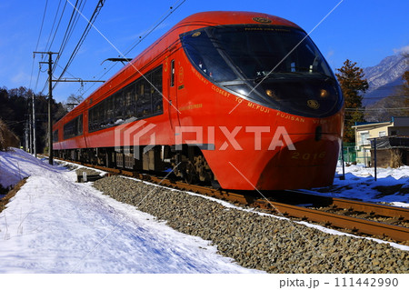 残雪と富士急行 富士山ビュー特急