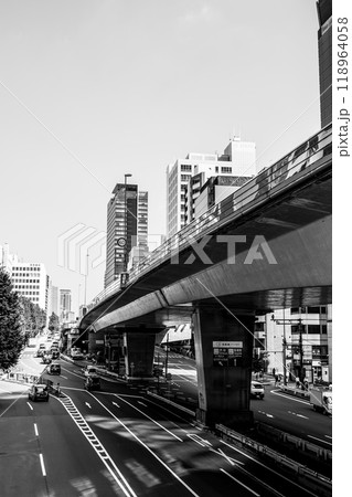 東京の都市景観 渋谷から六本木へ延びる首都高速 2024.09 b-5 モノクロ