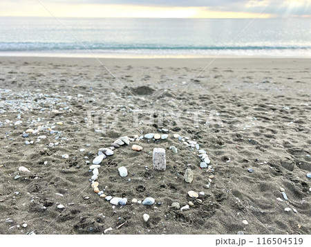 砂浜に石を並べたアート