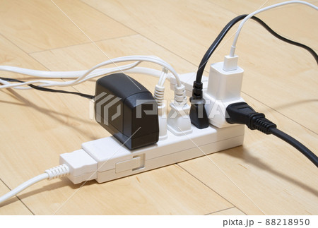 コンセントタコ足配線ごちゃごちゃしたケーブル写真素材