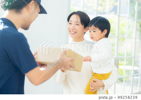 荷物を受け取る 親子