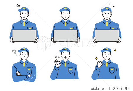 ユニホームを着た配送業者の男性 セット イラスト素材