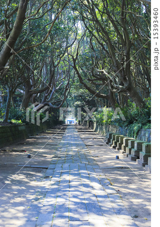 酒列磯前神社参道の見事な海洋性樹木