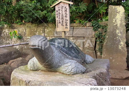 神社の境内にある亀の像